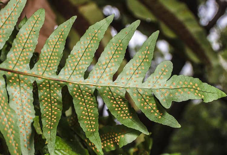 - Ở mặt dưới gân lá có các túi bào tử hình tròn hoặc trái xoan, màu vàng nhạt và không có áo túi. Những bào tử này “nắm giữ” khả năng sinh sản của cây Cốt toái bổ.